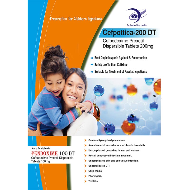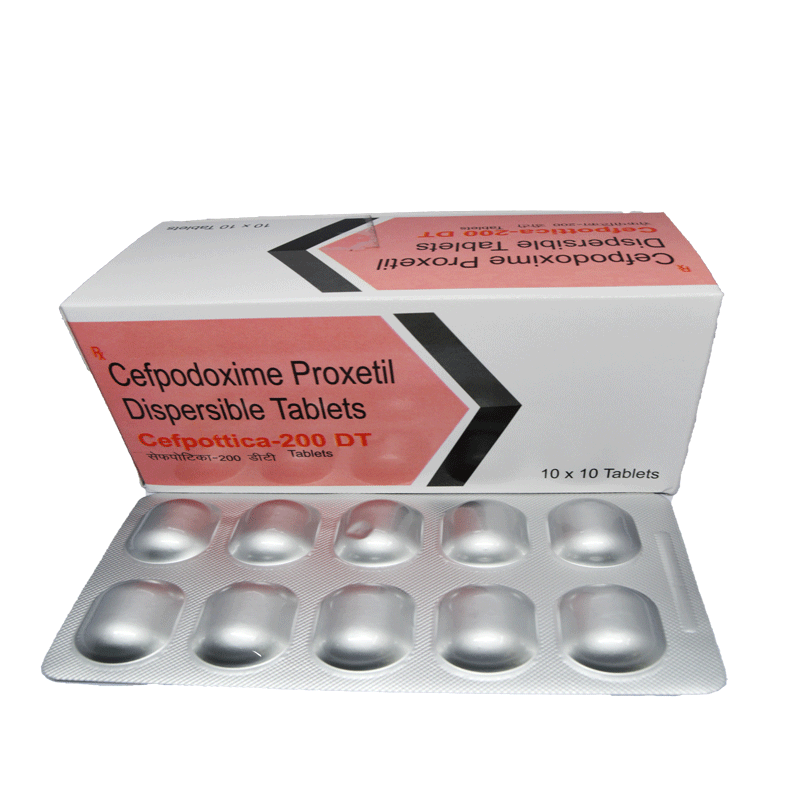 Cefpottica-200 DT contains Cefpodoxime Proxetil 200mg, a third-generation cephalosporin antibiotic designed for convenient oral administration, especially for patients who prefer tablets over injections. These dispersible tablets dissolve quickly in water, making them easy to swallow while maintaining accurate dosing. Cefpodoxime Proxetil works by inhibiting bacterial cell wall synthesis, offering broad-spectrum activity against gram-positive and gram-negative bacteria. Cefpottica-200 DT is prescribed for stubborn bacterial infections that may otherwise require injectable antibiotics, including respiratory tract infections, urinary tract infections, skin and soft tissue infections, and other resistant infections. Its oral formulation ensures effective bacterial eradication, improves patient compliance, and reduces the need for invasive injection therapy. Trusted by healthcare professionals, it provides reliable antibacterial coverage and faster recovery.