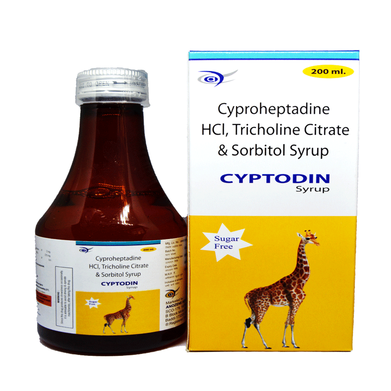 Cyptodin Syrup is a specially formulated combination designed to support appetite stimulation and digestive health. Each 5ml of syrup contains Cyproheptadine 2mg, Tricholine Citrate (65%) 275mg, and Sorbitol (70%), providing a comprehensive approach to improving nutrient intake and gastrointestinal function. Cyproheptadine, an antihistamine, stimulates appetite, helping individuals with poor appetite or undernutrition. Tricholine Citrate supports liver function and fat metabolism, promoting better digestion and absorption of nutrients. Sorbitol acts as a gentle laxative, easing bowel movements and preventing constipation. Cyptodin Syrup is ideal for children and adults who need appetite enhancement, improved digestion, and overall nutritional support. Its palatable formulation ensures easy administration, encouraging compliance and helping restore energy, weight, and overall wellness.